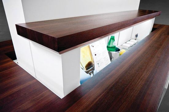 Grothouse Lumber says its custom edge-grain, flat-grain, and butcher-block countertops and bar tops are made from more than 60 responsibly harvested wood species. The company offers 30 standard edge profiles, 40 stock stains, custom stain matching, and its own Durata permanent finish for nonchopping applications. It also makes custom wood sinks. Standard lead time is two to three weeks, and prices range from $80 to $400 per square foot. The 21/4-inch-thick edge-grain Peruvian walnut countertop shown features a Durata Matte finish and costs $160 per square foot.
