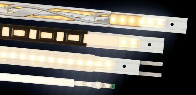 Keeler-brand LIT (Light Integrated Trim) combines low-voltage LED lighting strips with decorative trim and other elements to accent everything from cabinets and back­splashes to porch and deck railings. According to the manufacturer, you can easily create a continuous strip of any length with no soldering required. Various styles of decorative trim and optional covers (which can change the quality of the light) simply snap on. The product costs $10 to $40 per running foot.