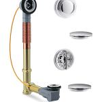 Kohler’s new PureFlo universal cable drains have a flexible neck that should make them easy to install regardless of the bath-wall slope. They come with a 30- or 45-inch cable to accommodate bathtubs 14 to 26 inches deep, and accept seven different trim kits offering either rotary-turn or push-button actuation and a variety of styles and finishes. For a change of pace, homeowners can easily change the appearance or the actuation method from the surface of the tub. The drains cost $70 to $210, and the trim kits $55 to $165.