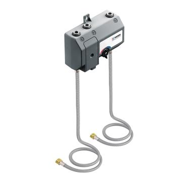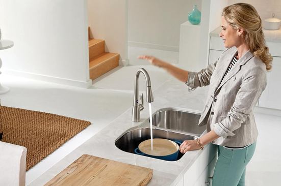 Moen’s new Arbor pull-down faucet with MotionSense has the usual handle but can also be operated by waving a hand over the spout or placing something underneath. The motion sensors are powered by six AA batteries that typically last about a year, or an optional AC adapter can be plugged into a GFCI outlet. The control box mounts under the sink. The faucet comes in three finishes — chrome, oil-rubbed bronze, and stainless — and costs $625 to $690.
