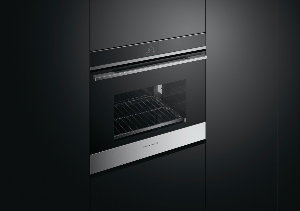 Wall ovens are ideal for compact kitchens. Fisher & Paykel’s 30-inch Wall Oven features a minimalist knob-free design with a touchscreen that allows users to cook by food type, function, or recipe. The oven has 17 functions and a total capacity of 4.1 cubic feet. The manufacturer claims the oven provides consistent heating for precision performance. It retails for $4,500. fisherpaykel.com/us/