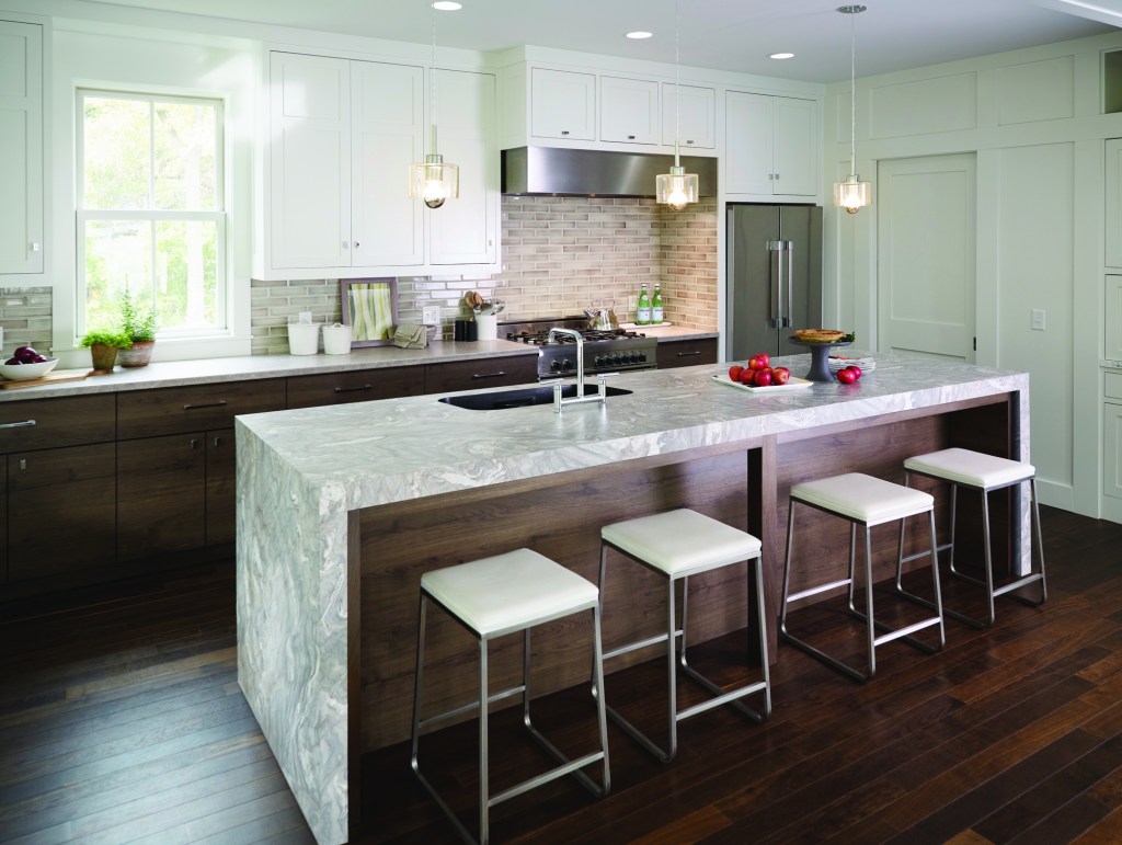 Formica Corp.’s new laminate countertop offerings in its Living Impressions Collection take inspiration from stones and woodgrains around the globe, from Nero Marquina’s black base with white veining to Neapolitan stone’s (pictured) blend of whites and grays. In all, the collection has six new 180fx patterns using the company’s true-to-scale scanning technology and six new Formica patterns. Two finishes, SatinTouch and Pure Grain, and two edge profiles, Waterfall and Double Radius, were also added. Contact a distributor for pricing. formica.com