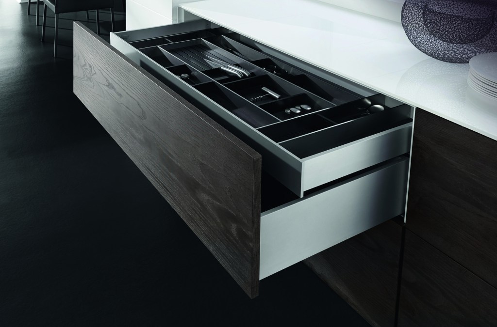 Grass America’s Vionaro drawers travel on a Dynapro concealed undermount slide system, which the manufacturer says provides a low opening pull force and smooth running performance using a synchronization mechanism and abrasion-resistant nylon rollers. The drawers are offered in four heights, three colors, and two closing options. grassusa.com