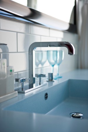 The Durat solid surfacing material is made from 30% recycled content, and offers high durability and easy maintenance, according to the manufacturer. The countertops are eligible for LEED credits, and a number of integrated sink options are available for prefabrication. caragreen.com