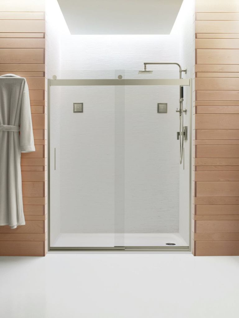 With the Levity shower door, there’s no need to call the glass company for the install. Doors fit 40- to 44-inch or 57- to 60-inch openings. The metal trim can be trimmed on site to fit the opening, and plastic wheels adjust so the door meets the wall if walls aren’t plumb. Available with 1/4-inch- or 3/8-inch-thick clear or frosted glass. (The 3/8-inch glass is going to feel more solid.) List price: $530. Kohler, 800.456.4537, kohler.com