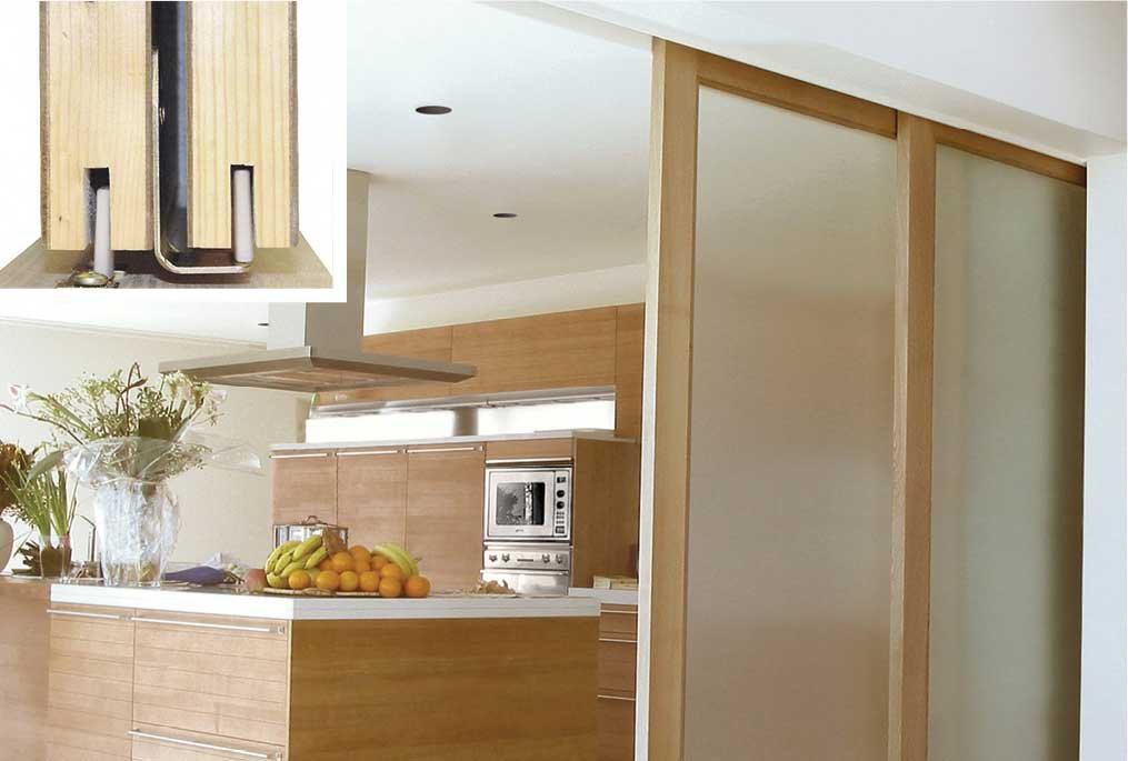Most two- and three-door pocket doors include a recessed floor track. Johnson’s Sliding Multi-Pass and By-Pass Pocket Door Hardware replaces that with J-shaped guides that fasten to one door’s side and fit in a channel in the adjacent door’s bottom, locking them together. Overhead tracks support doors up to 200 pounds. Hardware for the doors shown should cost about $150. LE Johnson Products, 800.837.5664, johnsonhardware.com