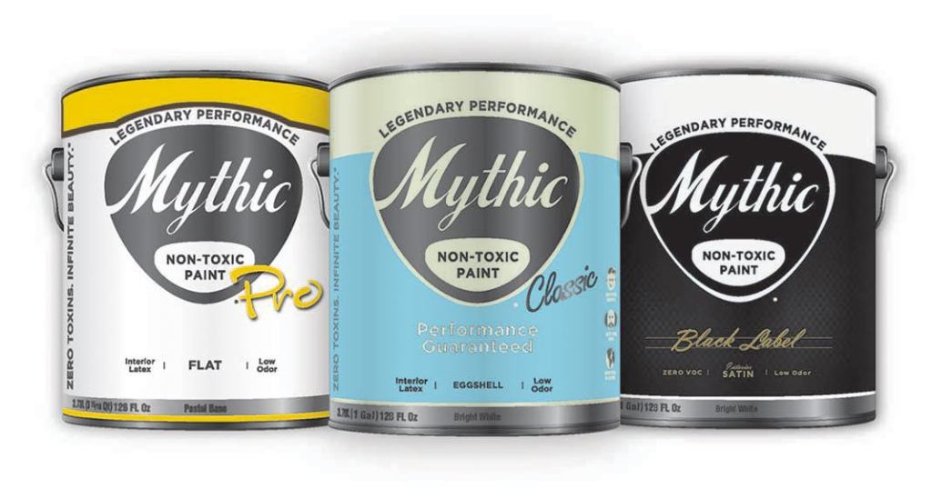 Nontoxic Paint. Most paint makers tout their green credentials by citing their products’ VOC content. Mythic says its paints are not only VOC-free — they’re also free of toxic ingredients and suspected carcinogens (such as formaldehyde and crystalline silica) routinely found in other paints. The company offers three paint lines: Black Label ($62 per gallon), Classic ($48 per gallon), and Pro ($30 per gallon). Southern Diversified Products, 888/714-9422, mythicpaint.com.