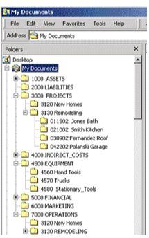 Figure 1.A uniform file and folder naming convention is a must when setting up a network file server. A numeric system that follows your existing job or cost codes is ideal. The 2001 version of NAHB’s chart of accounts can be downloaded from www.mountainconsulting.com/library/.