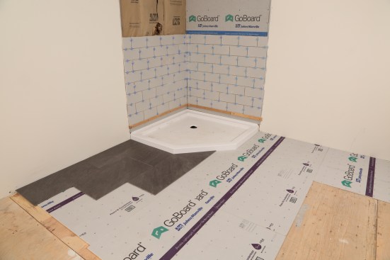 Johns Manville used its polyisocyanurate commercial roofing panels as the basis for new GoBoard waterproof tilebacker. Lighter than cement board for residential and light commercial tile applications, installers can score and cut GoBoard with a utility knife, and the material only needs to be sealed at the joints and fasteners. Available in 1/4 and 1/2-inch thicknesses. jm.com