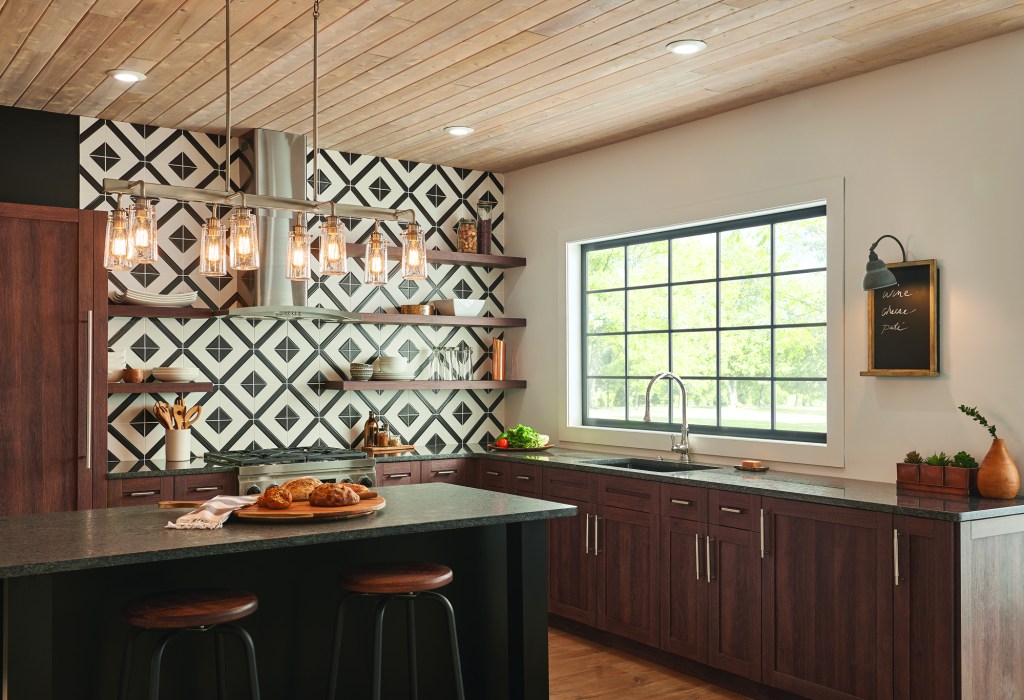 Kichler’s Horizon fixture is an LED-lit alternative to traditional recessed can fixtures. This light sits nearly flush, extending only 1/2 inch from the ceiling or mounted surface. It is designed to snap into either a 4-inch-octagon or a 4-inchsquare (2 1/8-inch minimum depth) ceiling junction box, offering fast installation and placement flexibility. The light is made from die-cast aluminum with a powder-coat white finish. It is Energy Star rated and wet-rated. Pricing starts at $30. kichler.com