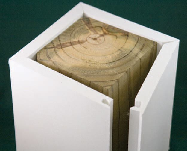Prefab Post Wrap. With KleerSnap Post Wrap, it takes as little as 10 minutes for a single worker to trim out a post, says the maker. The product’s cellular PVC formulation is so resistant to moisture damage the company offers a lifetime warranty against splintering, rotting, delaminating, and excessive swelling. It’s sold in lengths of 8 1/2 and 10 feet, in packages to fit 4×4, 6×6, and 8×8 posts. Package prices range from $85 to $200. Three moulding kits (bed, crown, and base & cap) are also available. Kleer Lumber, 866/553-3770, kleerlumber.com