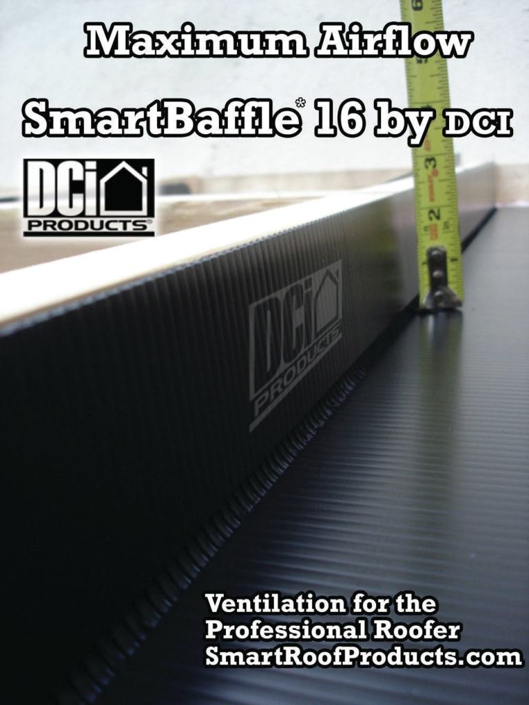 Smart Baffle rigid insulation is made from 4-mm-thick corrugated plastic. It comes in versions for 16-inch and 24-inch framing and is shipped as a flat panel with bendable flanges that are stapled to the rafters or trusses. According to the company, the product can support spray-foam expanding insulation without buckling, and can be installed before or after the roof sheathing. A 3-foot-long piece costs about $4 for the 16-inch version and $5.25 for the 24-inch version.