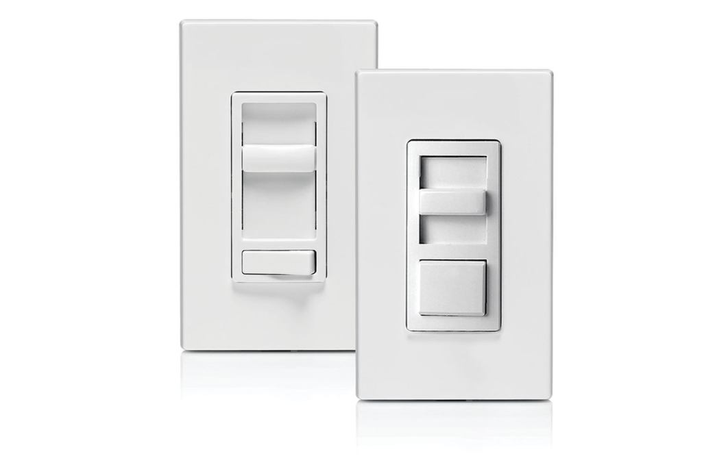 Leviton’s Decora SureSlide Dimmer provides slide-action full-range dimming for incandescent and dimmable LED and CFL lamps. It includes a slide dimmer and an on-off switch in rocker or push-button styles and has a rating of 150W LED/CFL and 600W incandescent. The dimmer can be used as a single-pole or three-way switch, fits into a standard wall box, and is suitable for multi-gang installations. A small selector switch, which is hidden behind the cover plate, lets you choose CFL/LED or incandescent. Several colors are available. It costs $26.