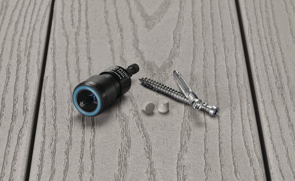 The Pro Plug System for PVC is launching with plugs made from Azek and TUFboard decking material, so the color and grain matches those brands perfectly. A special tool sets the epoxy-coated or stainless steel star-drive fasteners at the correct depth. Price varies. Starborn Industries, starbornindustries.com