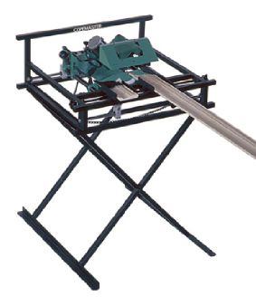The Copemaster is basically a circular saw mounted in a sliding carriage that moves on an X and Y axis. The operator produces perfectly coped pieces by following a template. It works similarly to a key-cutting machine or lathe duplicator. The 60-pound tool is built on a folding steel stand, making it reasonably portable.