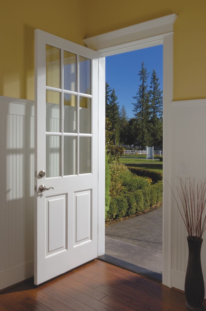 WaterBarrier technology combines a moisture-resistant medium-density overlay (MDO) with a thermoset acrylic latex primer topcoat and PVC glazing beads on the door’s exterior. The treatment creates a smooth and durable exterior that resists moisture absorption and is ready to paint, while retaining the look of wood on the interior. WaterBarrier comes at a $100 to $250 upgrade per door, depending on species, door design, and shape. simpsondoor.com.