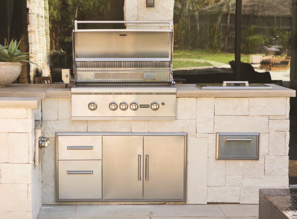 Coyote makes a line of built-in, as well as freestanding, gas grills for outdoor kitchens. They range from the 28-inch C-series to the 50-inch hybrid gas/charcoal model. S-series grills are stainless steel, come with stainless steel burners, grates, and other components, and have double-walled hoods, an interior grill light, a smoker box, and a rotisserie kit. The CSL-36 (shown) has three burners and an infrared rear burner with 875 square inches of cooking area and heat output of up to 95,000 Btu. It’s available with amber back-lit knobs for cooks who work after dark and retails for about $2,000. Coyote, 855.520.1559, coyoteoutdoor.com