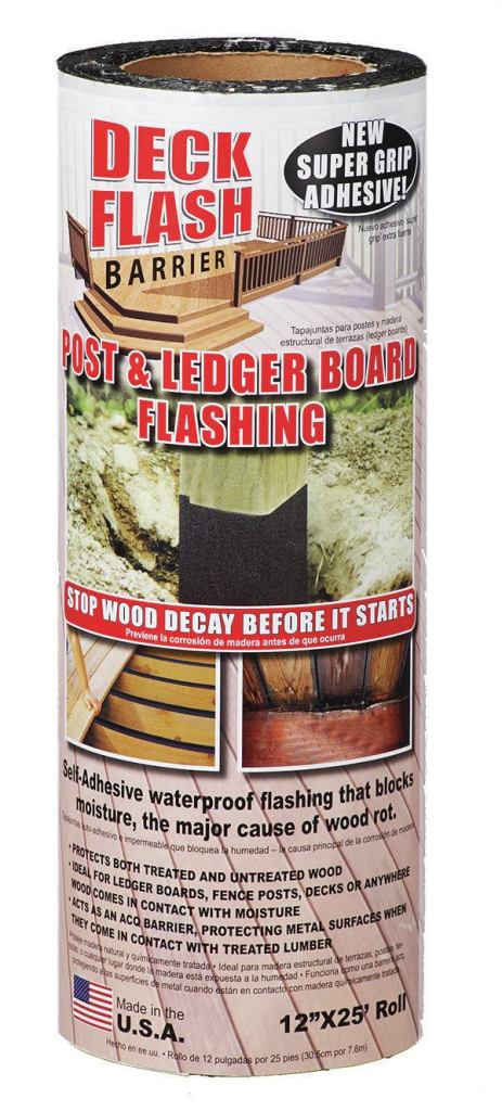 When applied to the tops of joists, Deck Flash Barrier protects against moisture damage and decay. The self-adhering peel-and-stick membrane seals around fasteners to block water infiltration and can be used between PT lumber and galvanized metal or aluminum to prevent corrosion. It should be applied to clean, dry surfaces in temperatures of 45°F or higher; in colder temperatures, it can be attached with fasteners, or spray adhesive can be used to improve adhesion. Deck Flash Barrier comes in 3-inch by 75-foot rolls. Cofair also makes a 12-inch-wide version for flashing ledger connections. Cofair Products, 847.626.1500, cofair.com