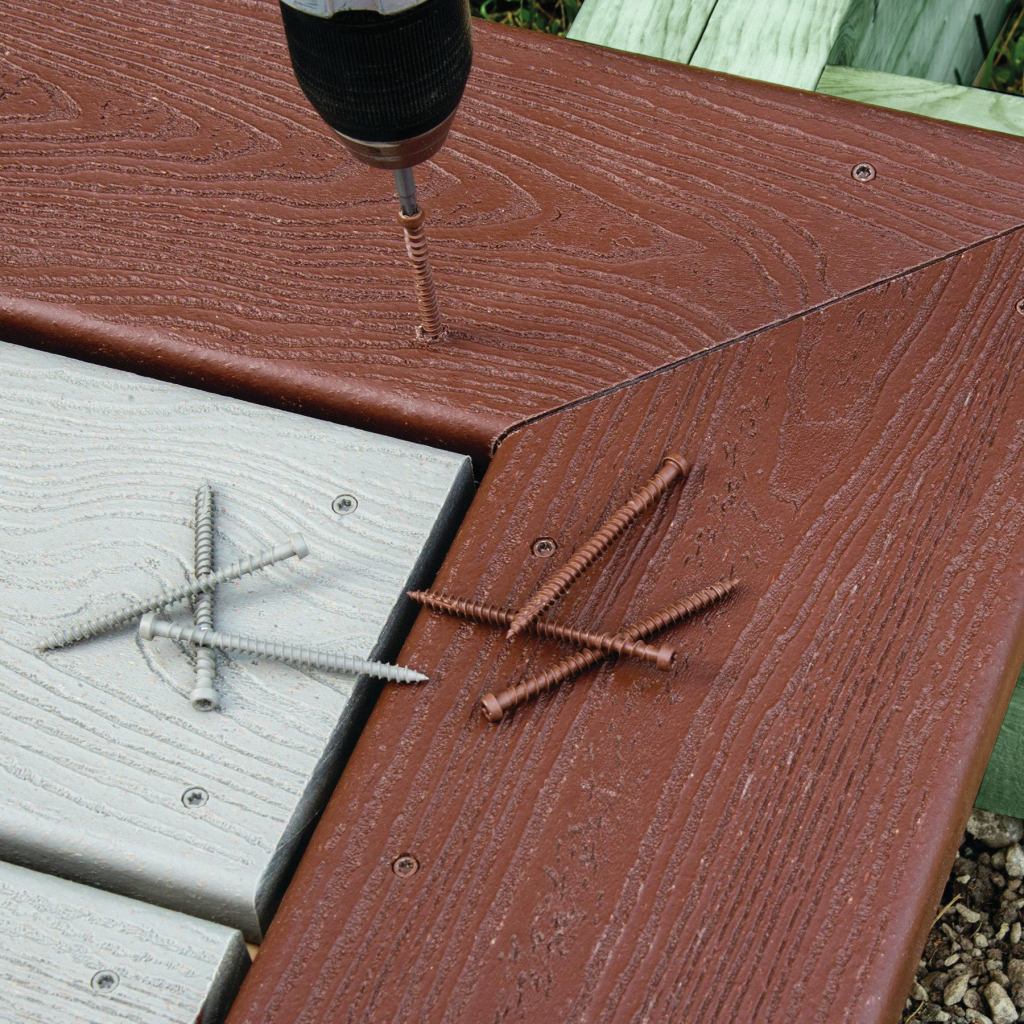 Simpson Strong-Tie says its Deck-Drive DCU Composite screw works in all kinds of composite decking including encapsulated boards. The head has inverted upper threads that seat the screw consistently and correctly; a “Quik Guard” coating allows the screw to be used with many types of treated wood framing; and the cap head is designed to prevent mushrooming. The screw is available in colors matched to most major composite decking brands and is an approved Trex fastener. It’s available in bulk and in a collated version for use with Quik Drive auto-feed driving systems. Simpson Strong-Tie, 800.999.5099, strongtie.com
