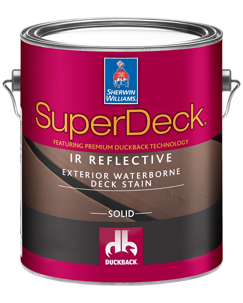 SuperDeck IR Reflective exterior waterborne deck stain has pigments that reflect sunlight to help keep decks cooler.