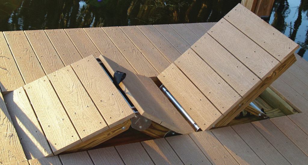 Tired of hearing about outdoor furniture blowing off docks and into the water, a Florida company invented the Chadirondack—half chaise, half Adirondack chair—which disappears into the deck when not in use. A deck can be retrofitted with the hardware in less than an hour, the company says, and because existing decking becomes the seat, there’s never a worry about grain or color matching. The seat is deployed by pulling on a strap and then adjusting the back. Putting the seat away is just as fast, the company says. When stowed, the Chadirondack is flush with the deck surface and takes up less than 7 inches in height underneath. Deccessories, 407.583.6251, deccessories.com