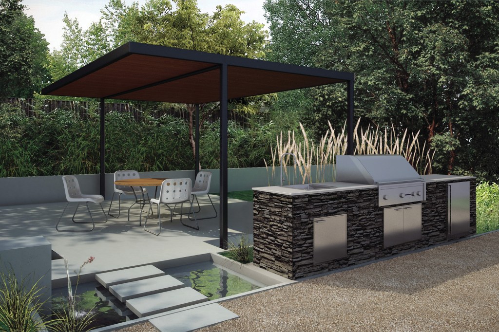 Manufactured using glass-fiber-reinforced concrete for durability, Signature Kitchens and Outdoor Cabinets from Kindred Outdoors and Surrounds can be installed on any solid flooring surface without footings or rebar in a single day. Signature Kitchens are a collection of pre-designed, customizable, lightweight building blocks, cabinets, bolts, and end caps. Outdoor Cabinets can be purchased individually for custom configuration. Stone finishes, countertops, and appliances must be purchased from other suppliers. Pricing varies. mykindredliving.com