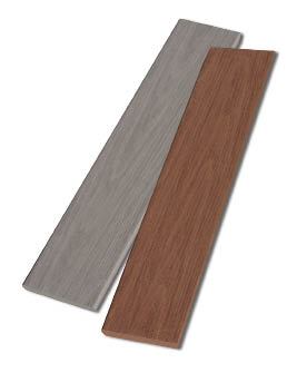 The planks are 1 inch thick and 51/2 inches wide and can be installed on 16-inch-on-center framing. They’re available in lengths of 12 feet, 16 feet, and 20 feet. Color-matched fascia boards are 5/8 inch thick, in widths of 71/4 inches, 91/4 inches, and 111/4 inches. Passport retails for about $3.25 to $3.50 per lineal foot.
