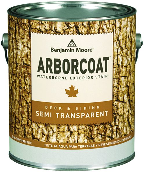 Arborcoat is available in five versions. The transparent and semi-transparent finishes combine water-dispersible alkyds and acrylic resins. The alkyds help the stain penetrate deeply into wood while the acrylic component is designed to add durability. Benjamin Moore recommends Arborcoat Protective Clear Coat be applied as a final deck finish for added protection against foot traffic and weather.