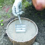 For deck frames that are close to grade, the footings have to be installed first. When the grade is flat, the post bases and anchor bolts are easy to align to a string. But lining them up can be tricky when the grade and footing tops are uneven. Rather than risk a misplaced post base, I generally opt to use a model that can be anchored with a wedge anchor bolt or an epoxy anchor bolt (Figure 9). Once the footings are cured, I can pinpoint the post-base locations, drill a hole, and install the anchor and base.