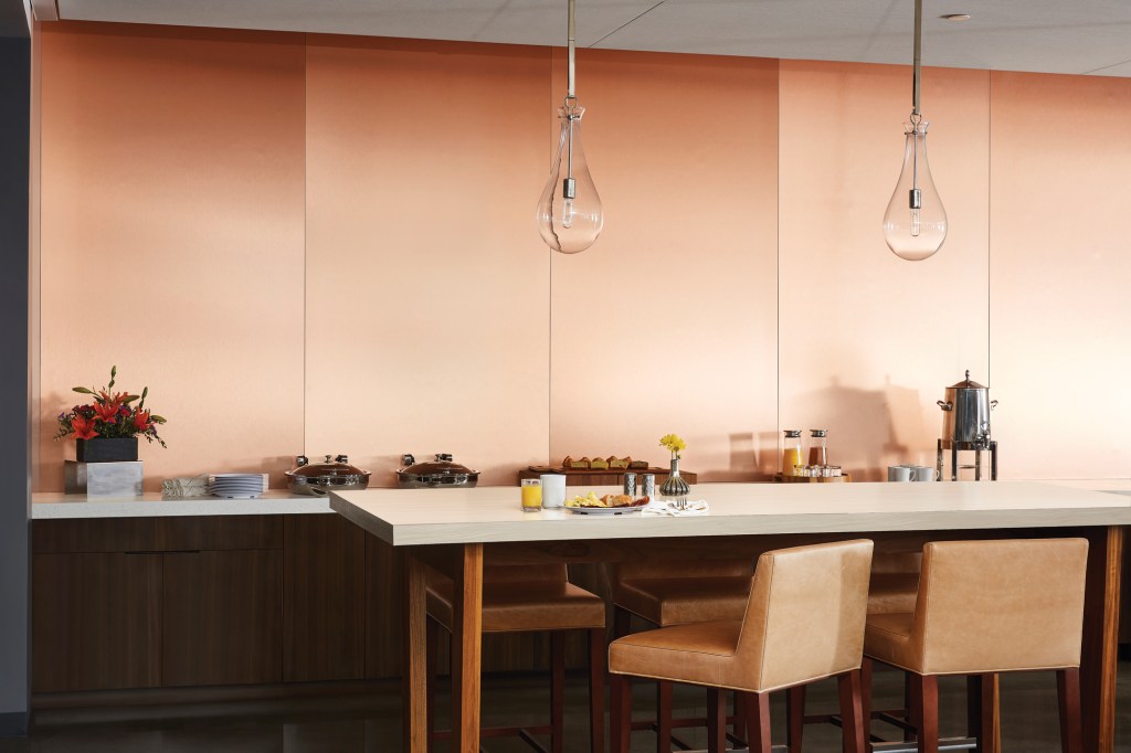 Formica expanded its DecoMetal Laminate surface line for vertical applications with 13 new metal visuals. Design options now include printed solid metal, rolled steel, polished metal, brushed metal, stainless metal, and copper veil. The manufacturer says the surfacing is lightweight, easy to install and maintain, and best for vertical use. Material costs range from $5 to $15 per square foot, according to Formica. formica.com