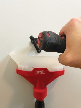 Crew members used several optional Air-Tip vacuum accessories that are available from Milwaukee, including a magnetic utility nozzle and a corner brush (above). When making cuts or drilling holes in walls, they found that the Air-Tip dust-collector attachment (right) was very effective at scooping up debris.