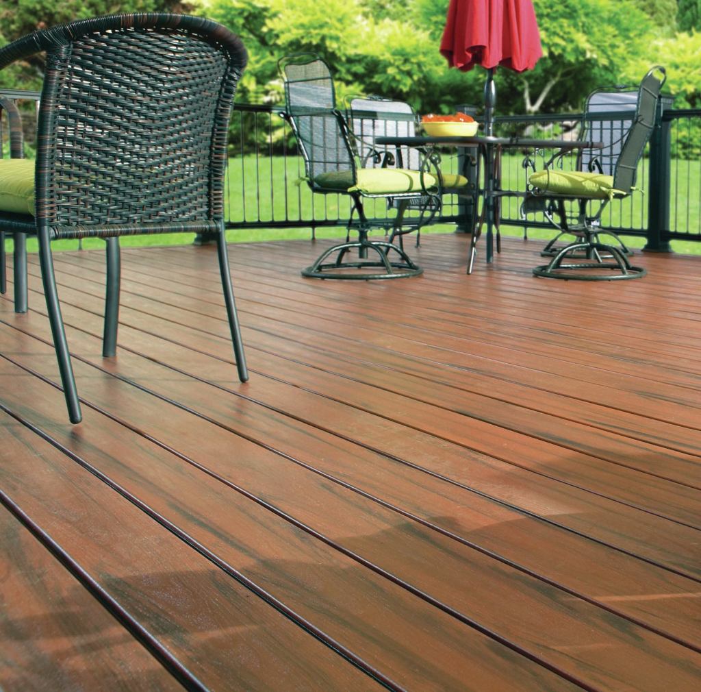 Armadillo decking from Rhino Deck is a capped wood-plastic composite manufactured from 100% recycled materials, according to the company, including a half-billion high-density polyethylene containers per year. The core is a mix of plastic and wood pulp, encased by a hard shell for resistance to scuffs, stains, and color fade. Armadillo decking comes in 16-foot lengths, in six colors. Grooved edges are compatible with Rhino Deck hidden fasteners. The company offers 12-foot lengths of fascia board in matching colors, as well as Armadillo End Sealer for use on planks cut in the field. Rhino Deck, 800.535.4838, rhinodeck.com