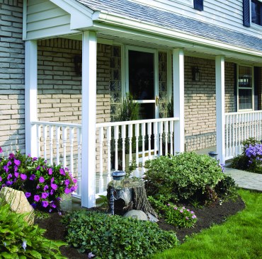 Columns are sold in 108-inch lengths, good for up to a 9-foot-tall porch. Reinforced with aluminum, the PVC columns will support up to 18,000 pounds each. The white vinyl exterior eliminates the need to paint or seal after installation, and you won’t have to worry about the columns degrading due to wet weather or insects. Because of the high load carrying capacity, Certainteed says, the cost of these columns will range between $250 and $325.