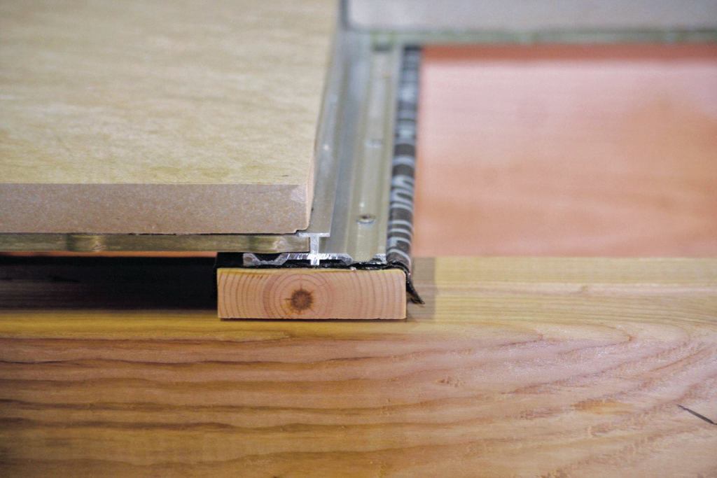 Mbrico Tile Decks consist of porcelain stoneware tiles installed without grout over aluminum tracks mounted over standard deck framing. Grooved tile edges slide onto the track, and milled “bumpers” maintain uniform spacing between tiles. The frost-resistant and color-fast tiles come in two sizes—12 inches by 24 inches and 24 inches square—and 30 colors, and do not need a sealant. Each tile can support 2,200 pounds, according to the maker. Tiles and track are delivered as a complete kit, including butyl flashing tape and stainless steel screws, for about $23 a square foot. Mbrico Tile Decks, 844.449.9214, mbricotiledecks.com