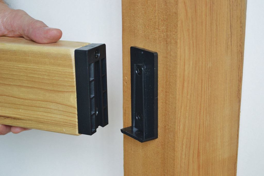 Titan’s Shadow Rail Connector is a two-piece plastic assembly that attaches a deck rail to a post while leaving fasteners hidden from view. One half of the connector is screwed to the end of the rail, and the other half to the inside face of the post. After assembling a rail section to fit between posts, the installer slides the assembly into place, locking the mating faces of the connectors together. The parts are made from UV-protected polycarbonate, which can be stained or painted to match the rail material. Connectors are sized for 2×4 rails and cost about $10 a pair. Fasteners are included. Titan, 866.577.8868, titanbuildingproducts.com
