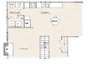 The owners had requested a laundry and a toilet somewhere near the kitchen area of the house. The builder had obviously had some difficulty finding a place to locate these rooms, so he’d decided to put them directly adjacent to and opening into the kitchen — an awkward arrangement. Since there should never be a direct visual relationship between the toilet room and areas used for food preparation, eating, or entertaining, I began by addressing this problem.
