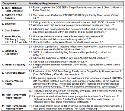 Homes that achieve ZERH certification must meet the rigorous performance criteria set for new construction by the federal government’s voluntary program. The program requirements are structured around a set of required specifications, followed by a performance threshold, and finally, third-party verification by a rater who inspects and tests the home to verify it meets ZERH technical requirements.