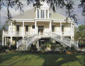 Justine, a plantation home moved to Lakeshore Drive in Mandeville, La., sits on a new 15-foot pier foundation. The renovated home was one of the few lakefront buildings to survive the surge rushing over the seawall when Katrina struck.