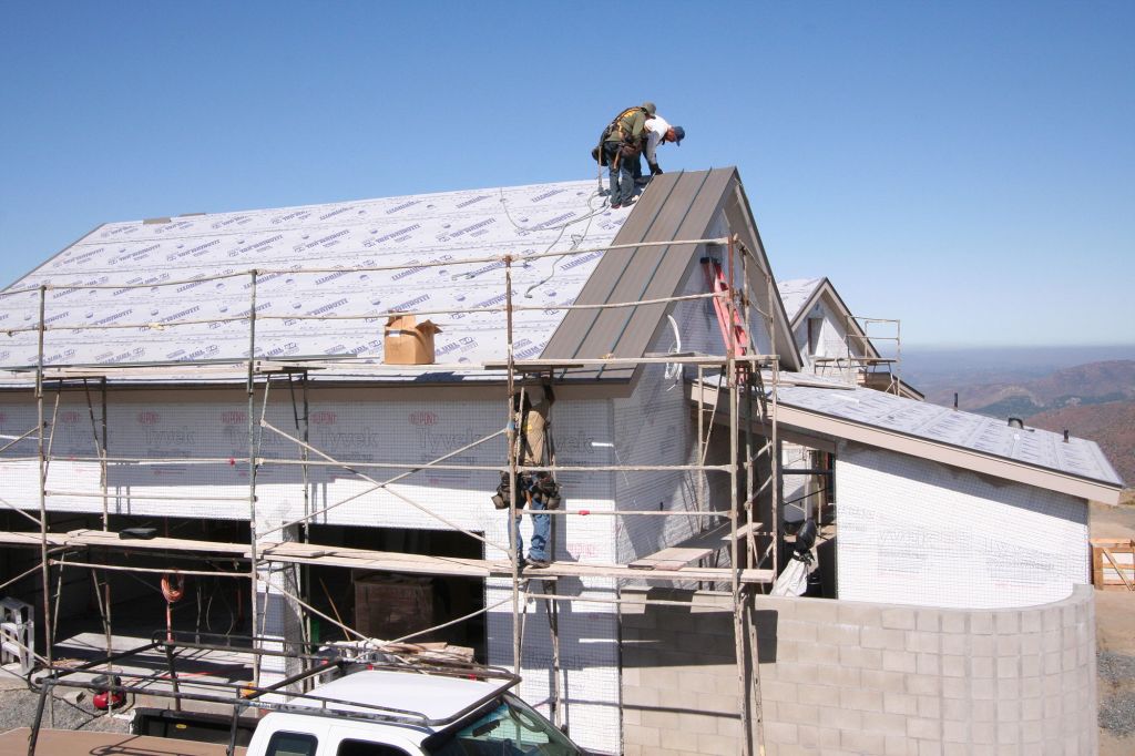 Airtightness is a key Passive House criterion in any climate, and for their first Passive House, Adams and Williams sweated the details. Wall plates are gasketed to the slab foundation. Walls and roof are air-sealed with Prosoco fluid-applied membrane, which continues up the walls and onto the roof sheathing. The polyurethane-core SIPs, applied over the sealed roof deck, create self-supporting overhangs around some of the roof; the large timber rafter tails under the eaves are exterior-applied false rafters.