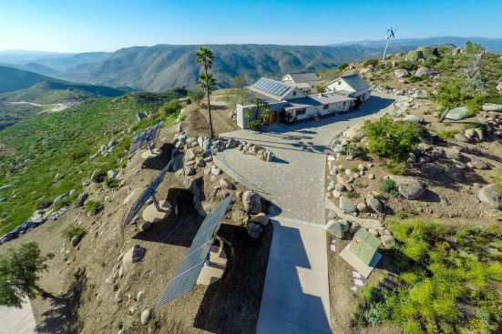 Wildfire risk is also the driver for the building’s deep-cycle battery backup system. During the dry, blustery autumn, homes in the area lose power occasionally because the local electric utility shuts off power lines when winds get too rough (hoping to avoid a repeat of the 2007 disaster). Casa Aguila’s batteries are designed to hold enough charge to get the house through those down times. But the system isn’t designed for frequent continual charge and discharge cycles that would let the house operate without a grid connection. Instead, the grid acts as the battery to even out variable wind and solar production: When the home makes more power than it needs, the excess is fed to the grid for use by the neighbors. But at night, or when the sun and winds are both weak, Casa Aguila is powered by the utility.