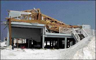 One architecturally designed home that did receive an engineering review prior to construction survived the storm surge from Hurricane Ivan. With the exception of a staircase designed to break away, this Pensacola Beach home remained intact.