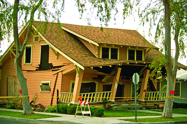 While many of the building elements used to resist earthquake forces are similar to those that resist hurricanes and tornadoes, the forces themselves are generally quite different. In high winds, uplift is the most significant force, whereas the predominant forces from earthquakes are lateral forces that apply horizontal loads. Earthquake waves do impose vertical forces on a building, but its weight often provides resistance to this load. A building’s weight also contributes to its response to the strong lateral force: As the ground shifts sideways (a force known as “ground acceleration”), the inertia of gravity delays movement in the upper parts of the house. By the time the upper parts move (the degree of deflection here is called “drift”), the ground is shifting in the other direction.