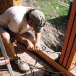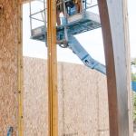 Since the bottoms of the SIPs were 14 feet above grade, we wanted to disguise the overall height of the church with a conventionally framed “skirt.” To satisfy FEMA requirements, this skirt had to be nonstructural and somewhat less substantial than the SIPs so that it would break away in the event of flooding. Therefore, we framed 30-inch-tall wall sections with 2x6s underneath the glulams. Where the deck, stairs, and hvac platforms would be attached, we bolted PT 2×12 ledgers to the piers at the same elevation, helping to create the illusion that the church is only 10 feet above grade (see slideshow).