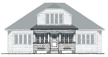 This New England bungalow displays the style’s trademark open front porch, composed of a shingle half wall on fieldstone piers with stout, square posts supporting the roof. The hipped roof and closed eaves are somewhat unusual for a bungalow and suggest the influence of the Prairie style. Because the open porch is rarely used, enclosing it to create a three-season room will add valuable space and daylight to the interior.
