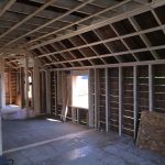 Inside the house, the second floor ceiling has been raised and the rafters and walls have been padded in to provide for increased insulation. The interior layout has been completey revised with new partition framing.