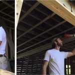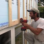 Carpenter Sonny Searles screws a piece of strapping over the foa…