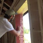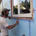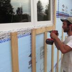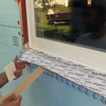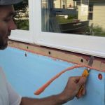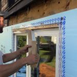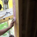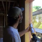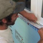 Sealing the joint between the foam insulation and the window buck fur-out with Dow Weathermate tape.