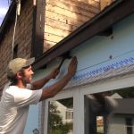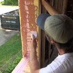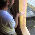 Kelly applies Prosoco Joint and Seam Filler to a rough window jamb.