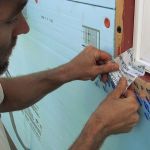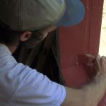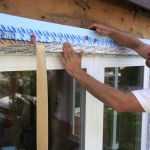 Applying another piece of Sega Wigluv tape at a window buck corn…