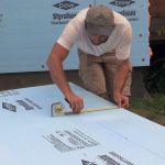 David Kelly scribes a piece of Dow Styrofoam as he pieces together the XPS insulating drainage plane for the house.